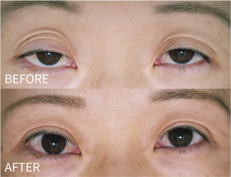 内容: 術前におでこボトックスを行い、眉毛下垂を予防して二重幅・皮膚の弛みのズレを防止します。その後、眼瞼下垂手術を行なっていきます。