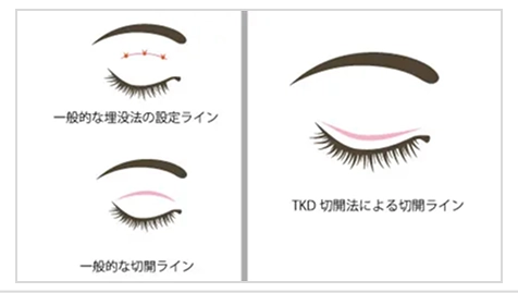 切開線が目立たず、ナチュラルな二重に仕上げる手法を用いて手術を行います。
