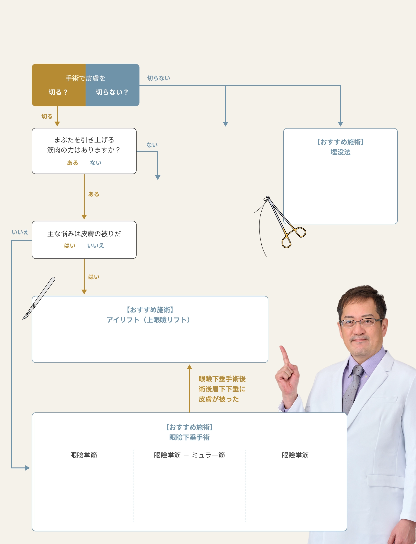 年間症例実績2,000件以上の眼瞼下垂施術のスペシャリスト、高田医師が執刀。